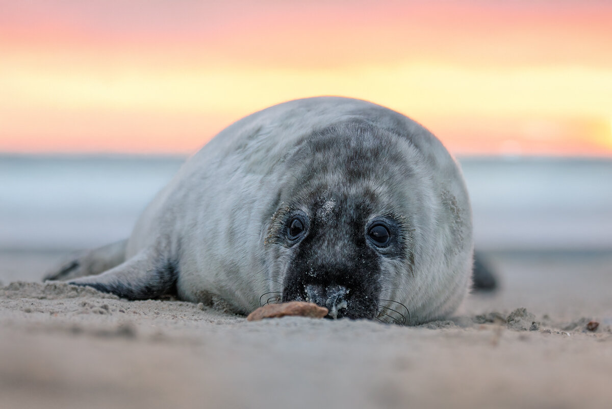 Auf der Düne von Helgoland erlebte ich einen magischen Moment, als ich im sanften Morgenlicht der aufgehenden Sonne ein Kegelrobben-Baby fotografieren konnte. Die Sonne, die sich langsam über den Horizont erhob, tauchte die Szenerie in ein warmes, goldenes Licht und verlieh dem kleinen Robbenbaby eine fast märchenhafte Ausstrahlung. Das flauschige Fell des jungen Tieres schimmerte im Gegenlicht und hob sich eindrucksvoll vom sandigen Hintergrund ab. Es war ein einzigartiger Augenblick, der die friedliche Schönheit und die zauberhafte Atmosphäre dieses besonderen Ortes perfekt einfing. Dieses Erlebnis wird mir noch lange in Erinnerung bleiben.